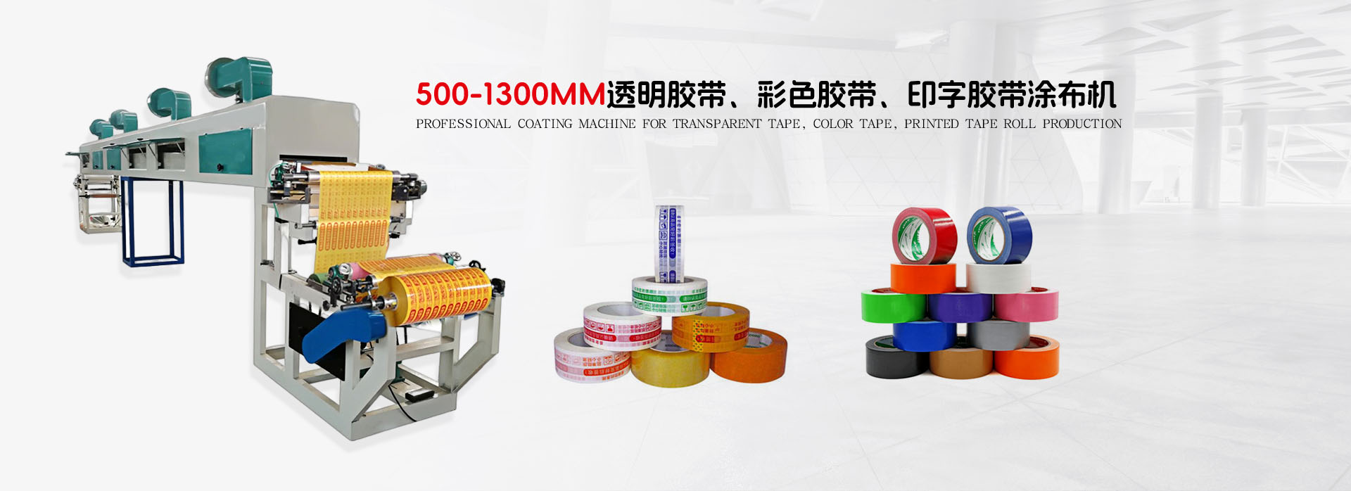 我公司主要產品:BOPP涂布機、PE涂布機、膠帶分切機、分條機、復卷機、自動切臺、復卷裁切機、印刷機等。